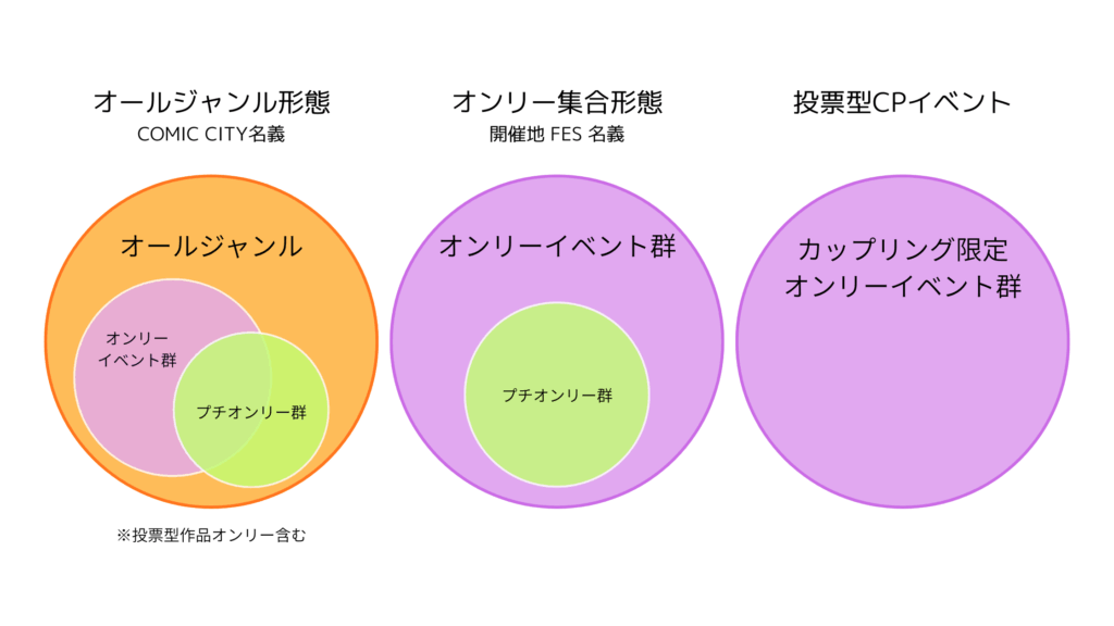 同人文化では、特定傾向のサークルのみ参加できる同人誌即売会を「オンリーイベント」と称しています。